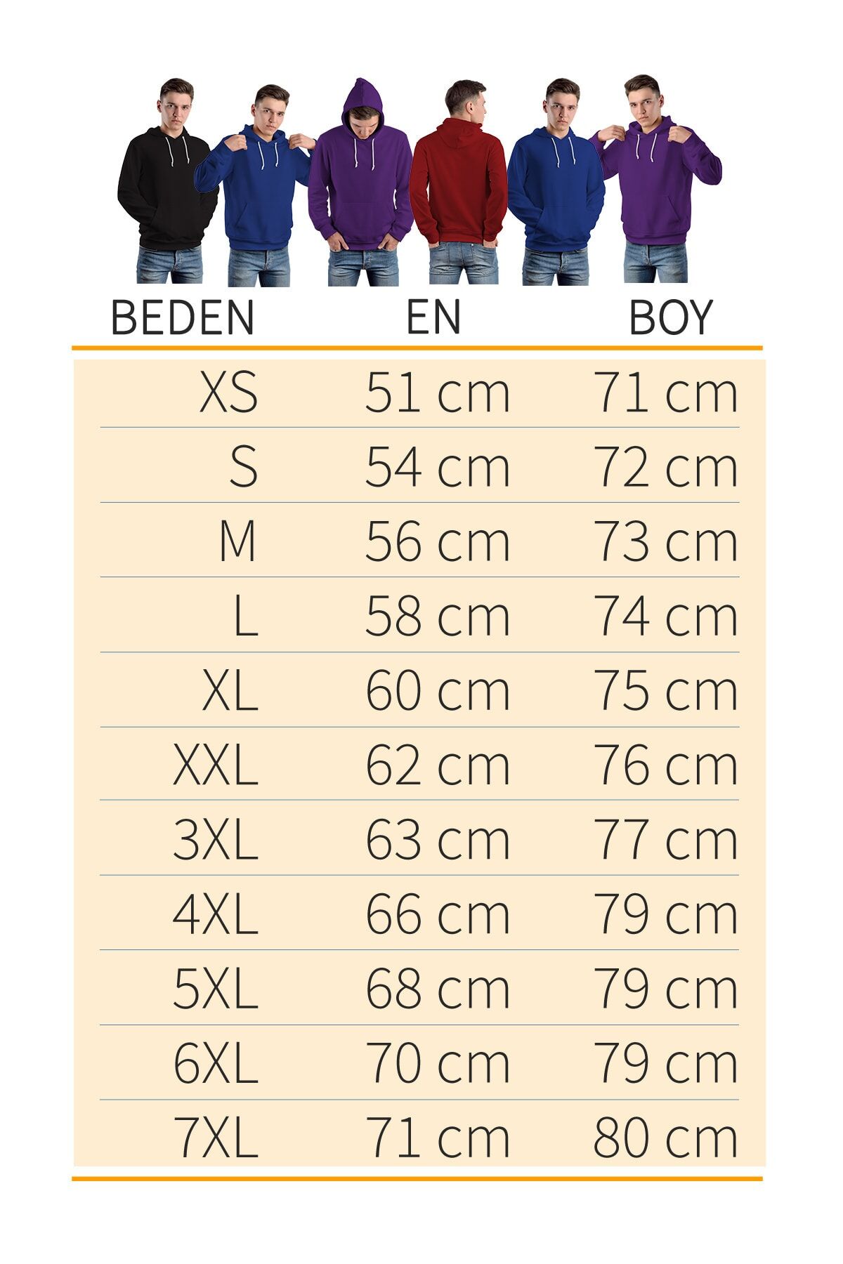 Modern, Rahat ve Kaliteli; Kumaşlarımız birinci sınıf olup, şardonlu 3 ipliktir.; Esnek & Rahat; Günlük kullanımda hareket özgürlüğü sağlayan mükemmel kesimi sayesinde hem şık hem de konforludur.; Regular Kalıp ve büyük beden seçenekleri; Ürünlerimiz %100 yerli üretim olup Manisa'da kendi atölyelerimizde tasarlanıp, basılıp yine kendi terzilerimiz tarafından dikilmektedir.; Beden Tablosu (en/boy):; XS - 51cm / 71cm; S - 54cm / 72cm; M - 56cm / 73cm; L - 58cm / 74cm; XL - 60cm / 75cm; XXL - 62cm / 76cm; 3XL - 63cm / 77cm; 4XL - 66cm / 79cm; 5XL - 68cm / 79cm; 6XL - 70cm / 79cm; 7XL - 71cm / 80cm; En - koltuk altından diğer koltuk altına; Boy - omuzdan kıyafet bitimine kadar ölçülmelidir.